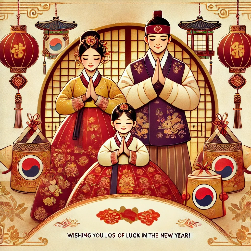 "이번 설에는 가족들과 함께 좋은 시간 보내세요! 올 한 해도 건강하시고, 행운이 가득한 한 해 되시길 바랍니다."